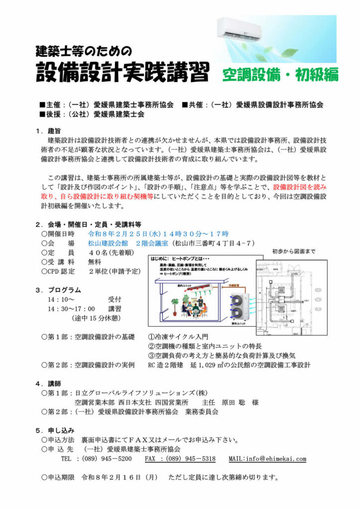 設備設計実践講習(空調設備・初級編)のご案内